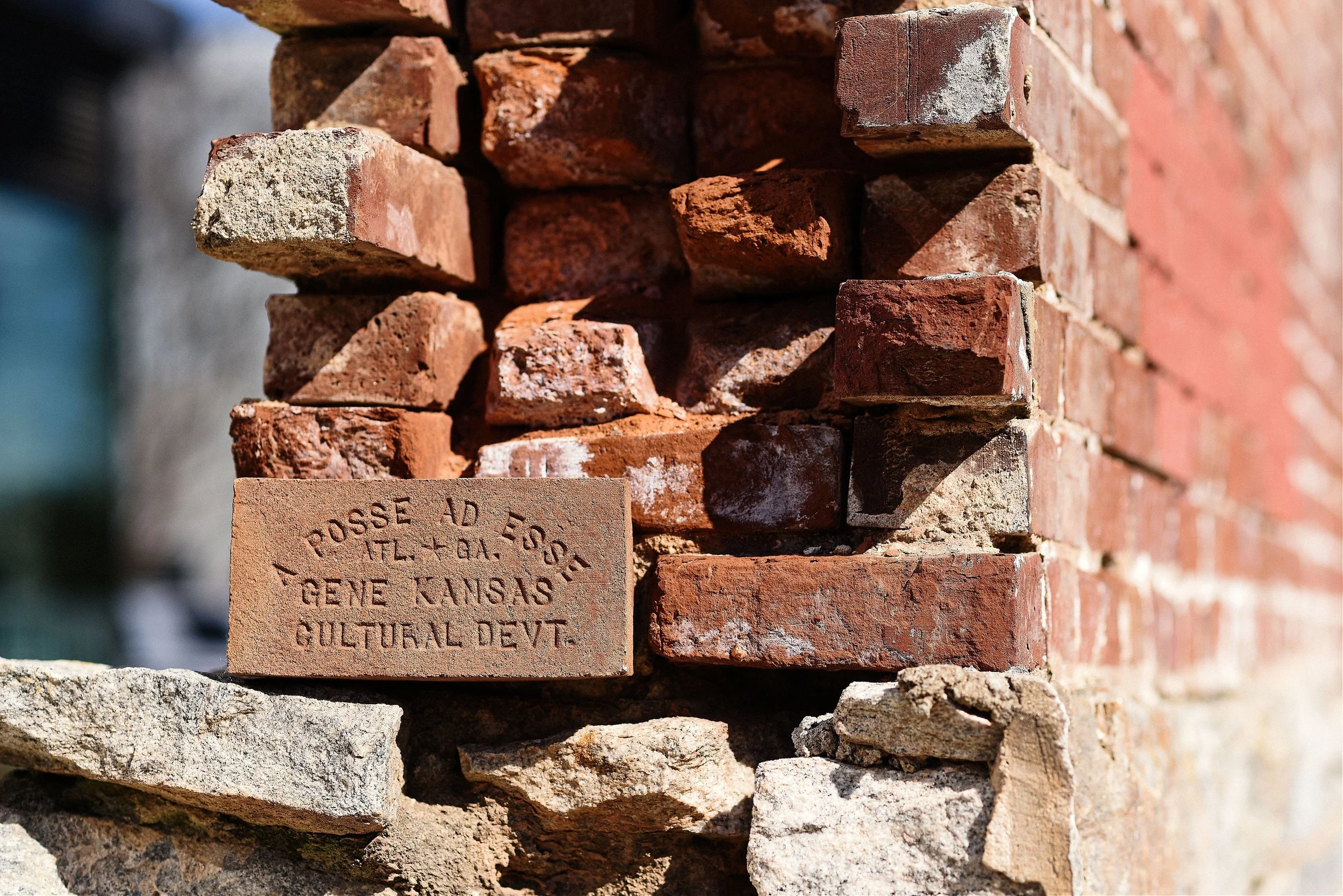 Now, each brick has a bit of a different coloration, but the same message: A Posse Ad Esse, ATL * GA, Gene Kansas, Cultural Devt.